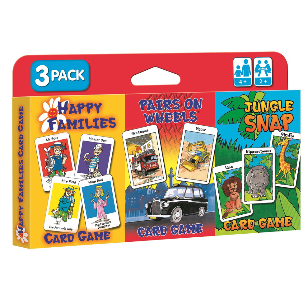 3pk Children's Card Games - Jungle Snap, Pairs on Wheels & Happy Families