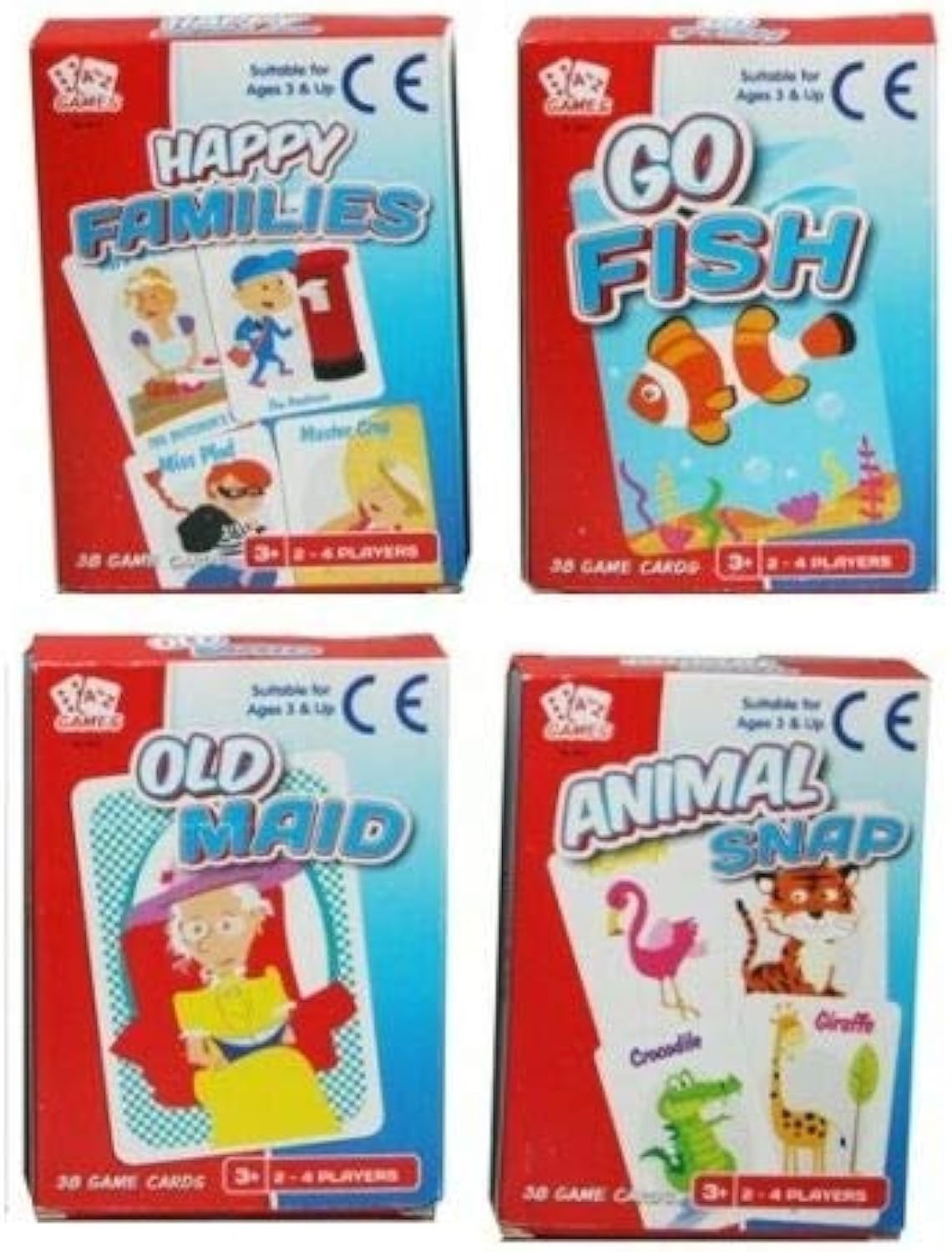 Atoz 4 Classic Children's Card Games Set Old Maid Go Fish Animal Snap Happy Fami