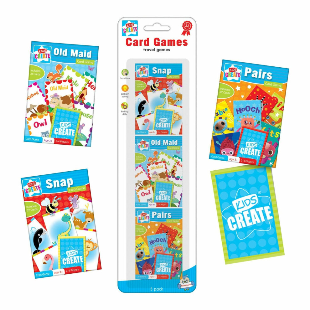 3 PACKS OF CHILDRENS ASSORTED CLASSIC CARD TRAVEL GAMES SNAP PAIRS OLD MAID CARG