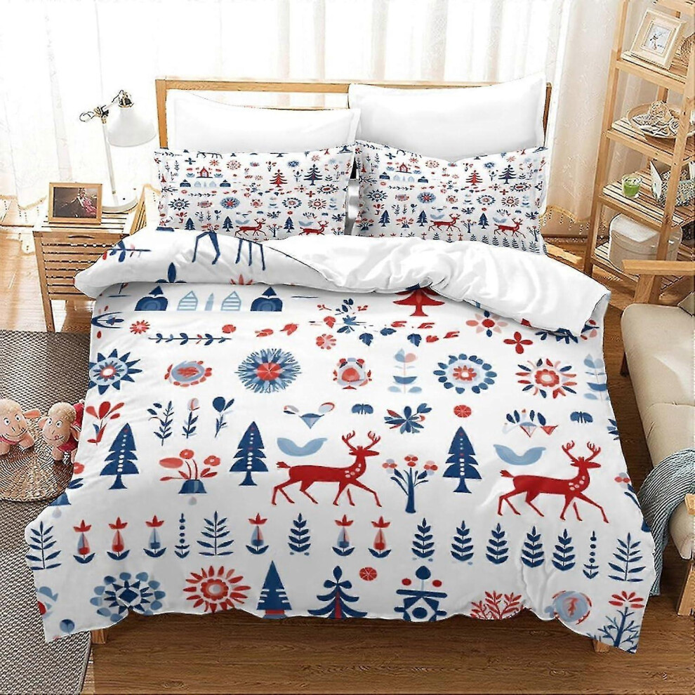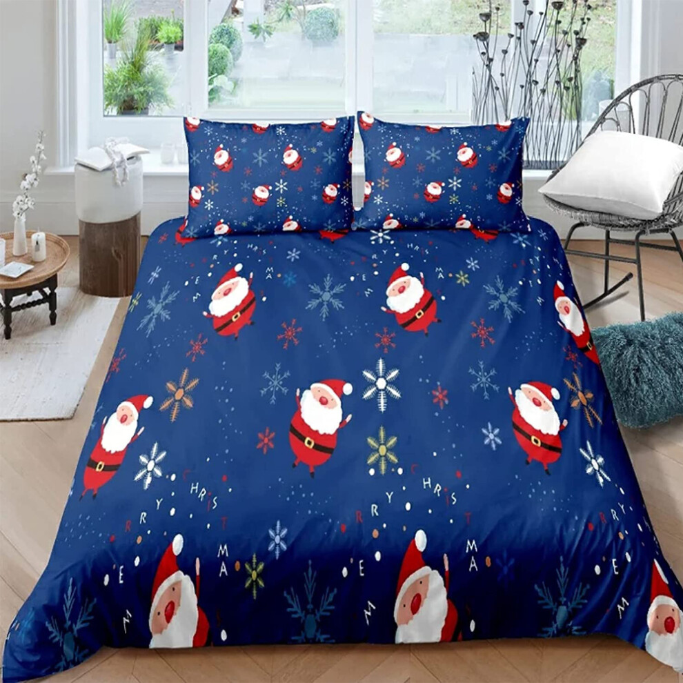 Easy Care Microfiber Polyester Bedding Set, Christmas Theme Machine Washable Reversible Design Duvet Cover For Bedrooms Guest Rooms Childrens Rooms,
