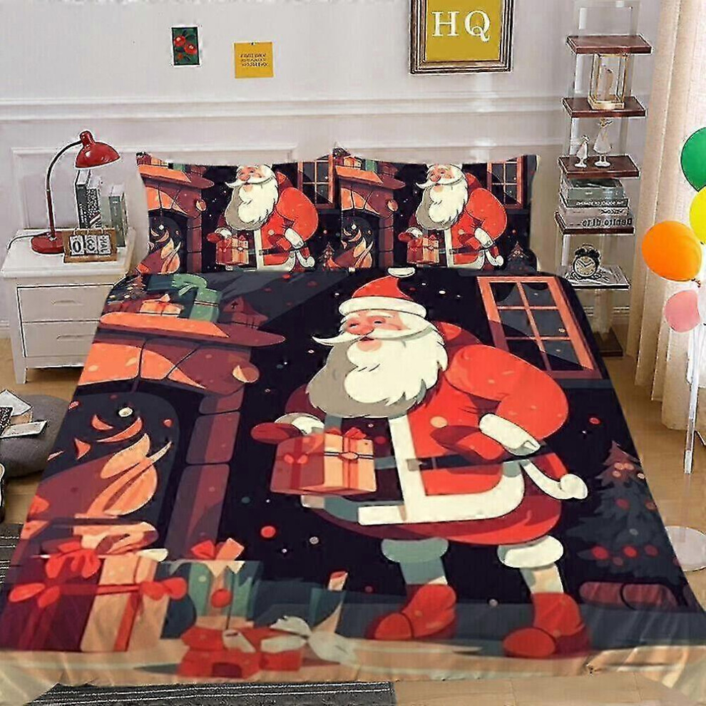 (As show, 200x200cm 78x78in) Christmas Santa Claus Themed Children's Bedding Duvet Cover Set and Bed Sheets Suitable for Certain Brands v4429
