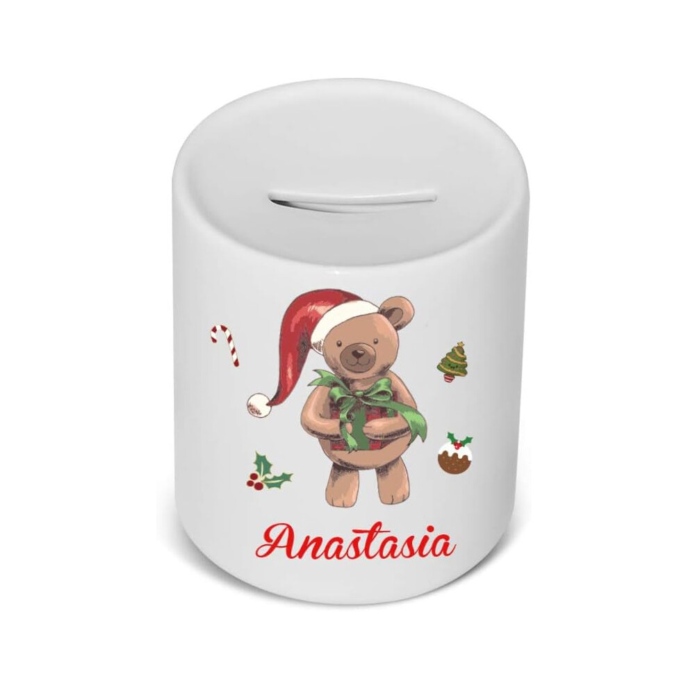 (Christmas Teddy Bear) Personalised Ceramic Children's Piggy Bank/Money Box