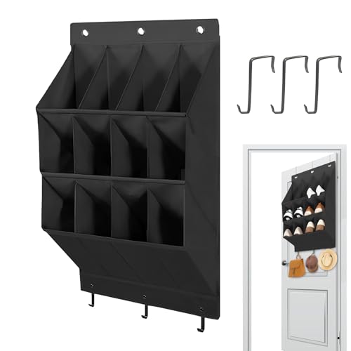 Shoe Organiser for the Door, 12 Compartments Toy Storage - Over Door Clothes Rail - For Bedroom, Dorm, Children's Room, Office, Garage, Utility Room, Bags, Toy, Mobile Phones, Students