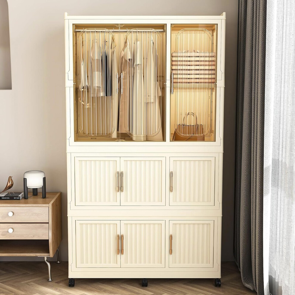 Portable Children's Wardrobe With Doors And Wheels, Plastic Wardrobe Organizer With Clothes Rail, 92x45x158 Cm