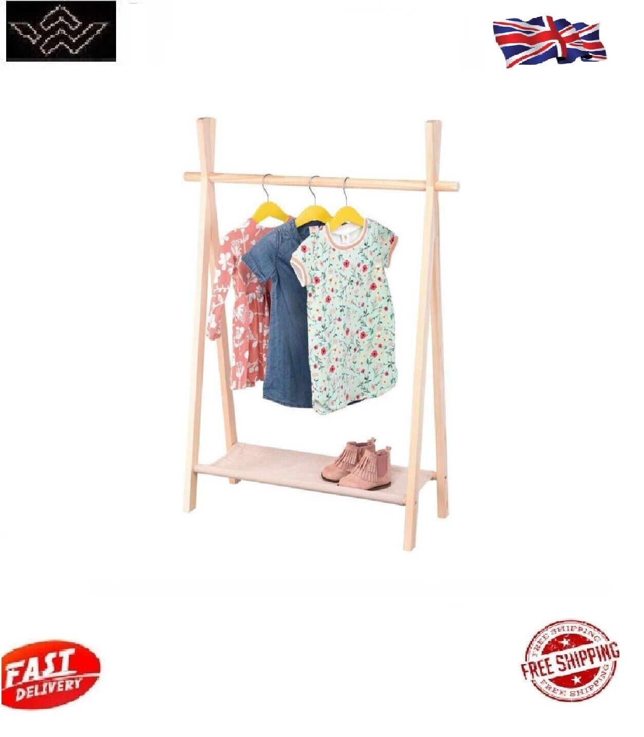Childrens Clothes Rail Coat Rack Kids Wooden Hanging Dress Up Wardrobe Storage