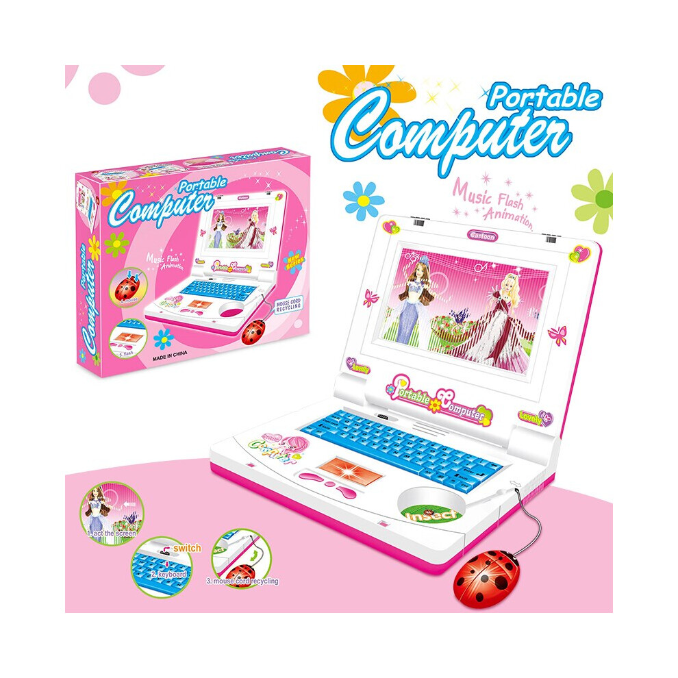 (HQ2236U-pink) Simulation notebook light music cartoon computer children's enlightenment