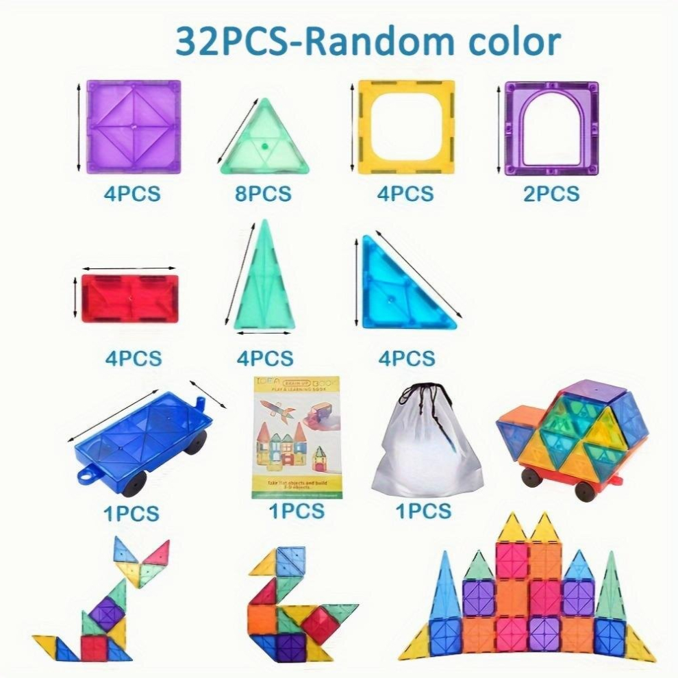 Magnetic Building Blocks Tiles 60 Pieces 3D, 2 Cars Pieces Constructions Children's Educational Magnetic Construction Toy Creativity Toys for Children 3 4 5 6 Years Old