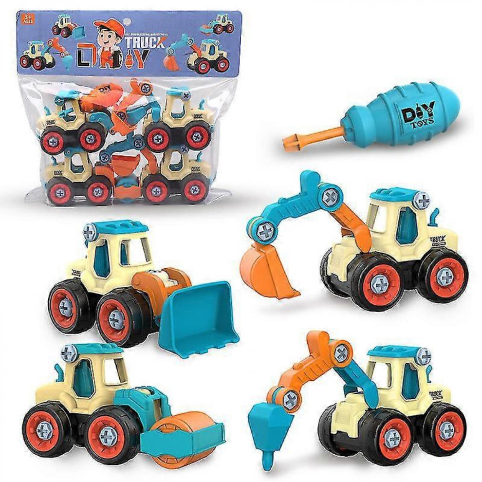 Guoguo Kids Construction Toys Diy Screw Engineering Vehicle Excavator Road Roller Bulldozer Children's GiftC