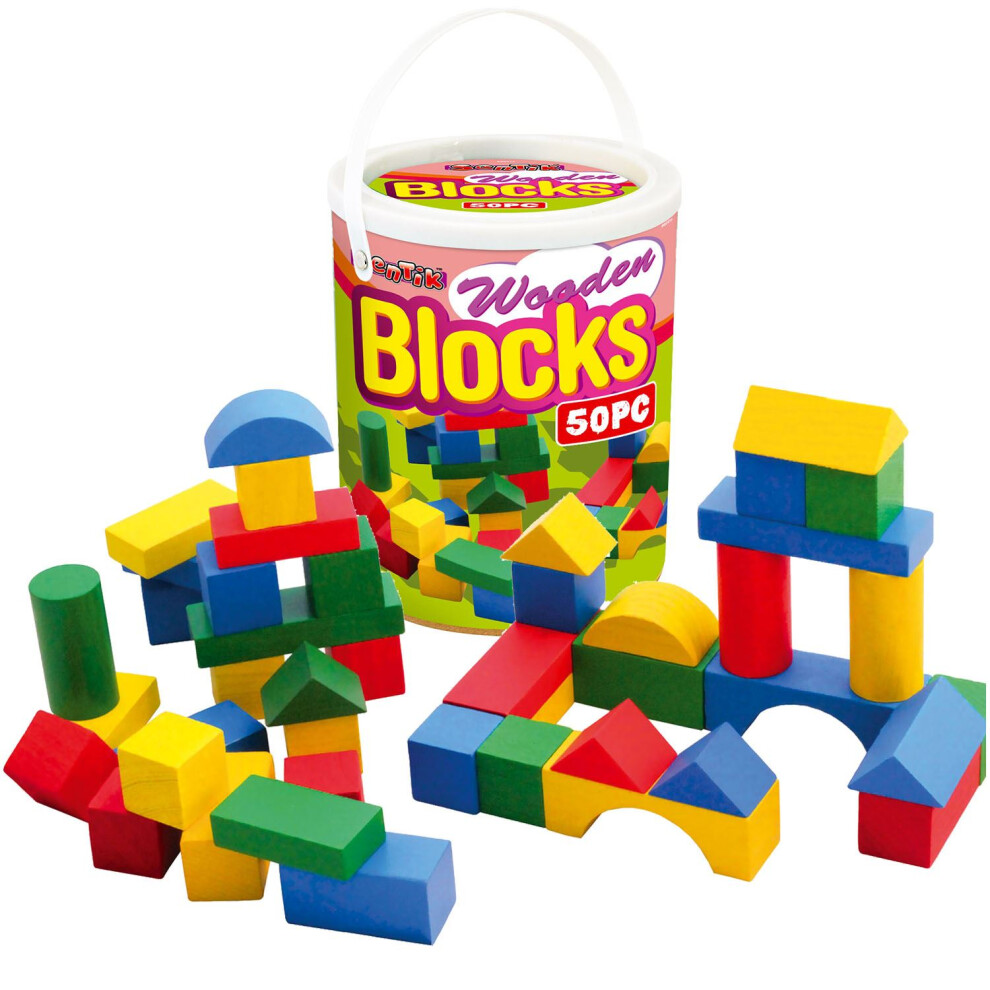 50 Bricks in a Tub Wooden Construction Building Blocks Bricks Children's Wood Toys Pieces Xmas Gift