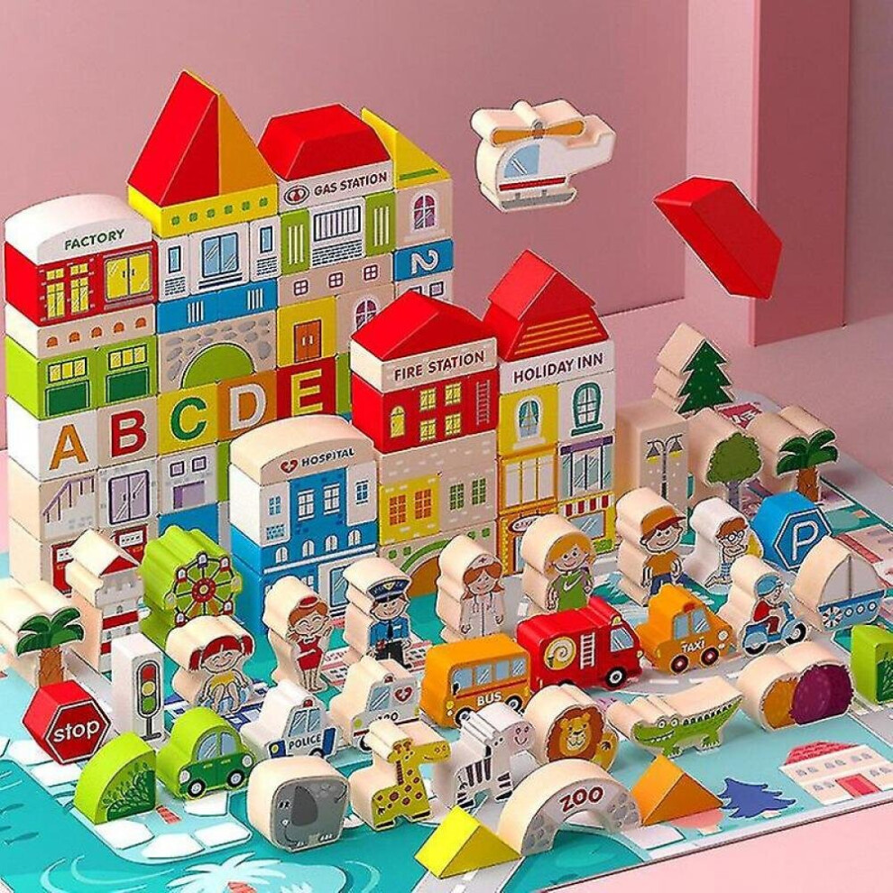 120 Pieces Of Wooden City Building Blocks Children's City Construction Wooden Blocks Children's Toys
