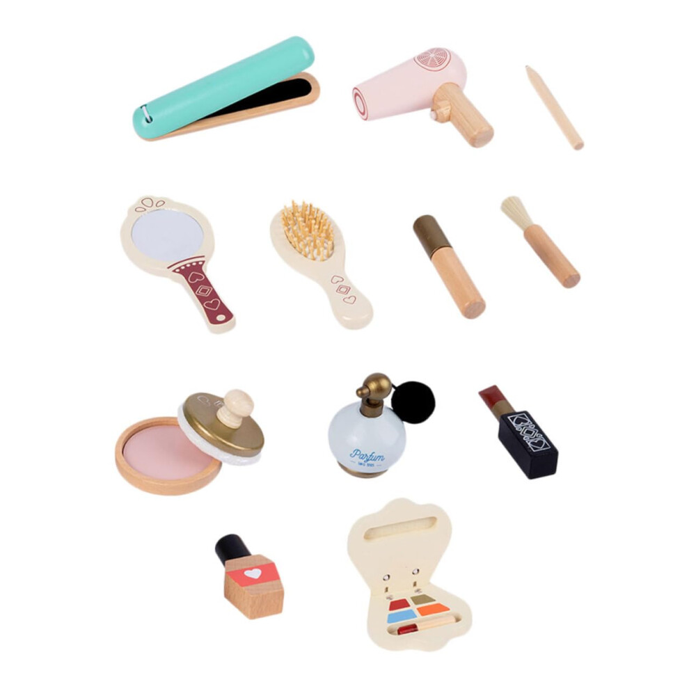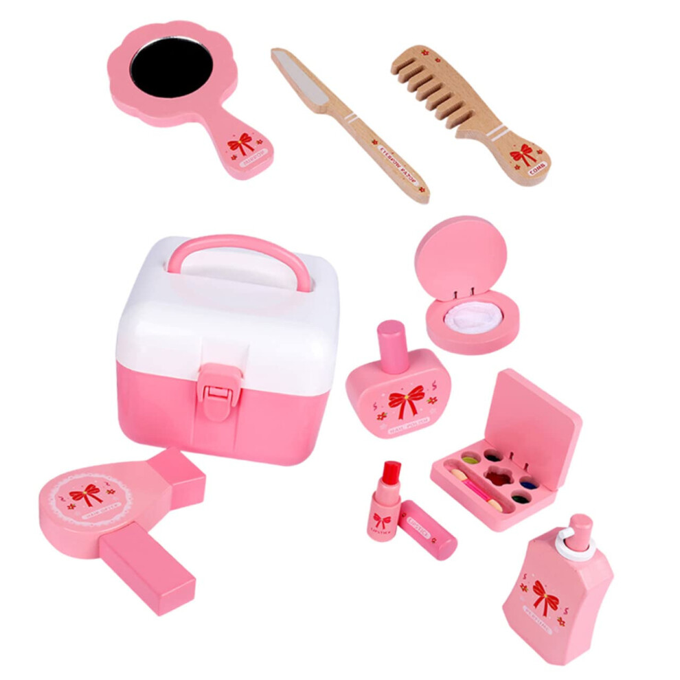 12pcs/Set Wooden Simulation Beauty Makeup Toy Girls Cosmetic Kit Pretend Play Fun Childrens Birthday Gift Creative Educational