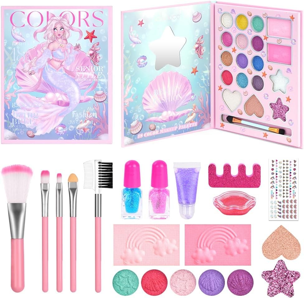 Kids Makeup Kit - Little Girl Play Games Toys Presents, Safe Washable Beauty Kit, Washable Real Cosmetic Makeup Set, Make Up Starter | Princess Birthday For Childrens Imaginative Play
