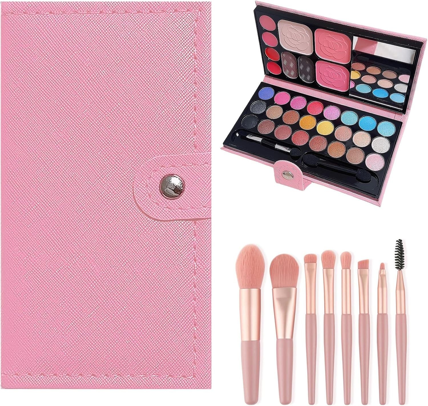 AYNKH Kids Makeup Set for Girls with 9 Brushes, 32 Colors Children's Pink Palette Toys, Non-Toxic Washable Cosmetics, Birthdays Party Stage Performance Christmas Halloween Beauty Set Princess Gift