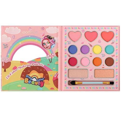 HISUNBEN Makeup Sets for Girls,13 Colors Children's Makeup Toys with Mirror,Non-Toxic Kids Cosmetics with 1 Washable Brushes, Stage Performance Halloween Birthday Party Beauty Set Gift