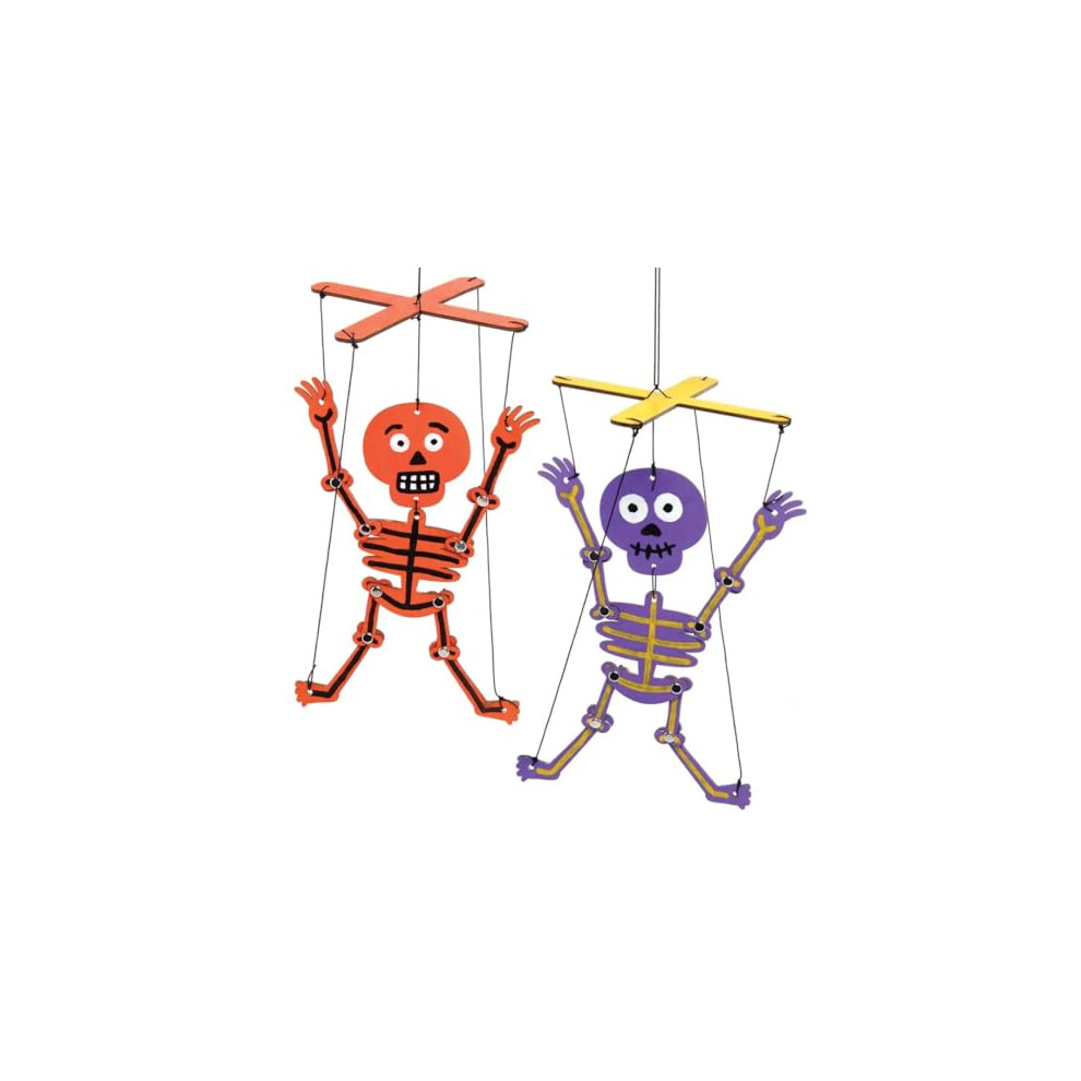 AX245 Skeleton Wooden Puppet Craft Kits - Pack of 3, Childrens Woodcraft Painting, Make Your Own, Crafts for Kids