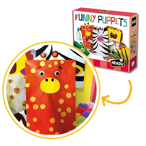 Headu - Funny Puppets, Kids Craft Set, Craft Kit, Childrens Craft Kits, Arts and Crafts for Kids. Build, Cut Out and Play, Age 5-10yrs, Medium