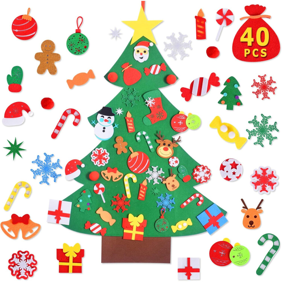 DIY Felt Christmas Tree Set with 40Pcs Ornaments Wall Hanging Decorations Children's Felt Craft Kits for Kids