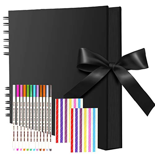 FUNVCE Scrapbook Photo Album 80 Black Pages Memory Books 11.8 x 8.2 inch A4 Craft Paper DIY Scrapbooking Photo Albums with 12 Metalic Marker Pens for Anniversary Birthday Friends Childrens Gift