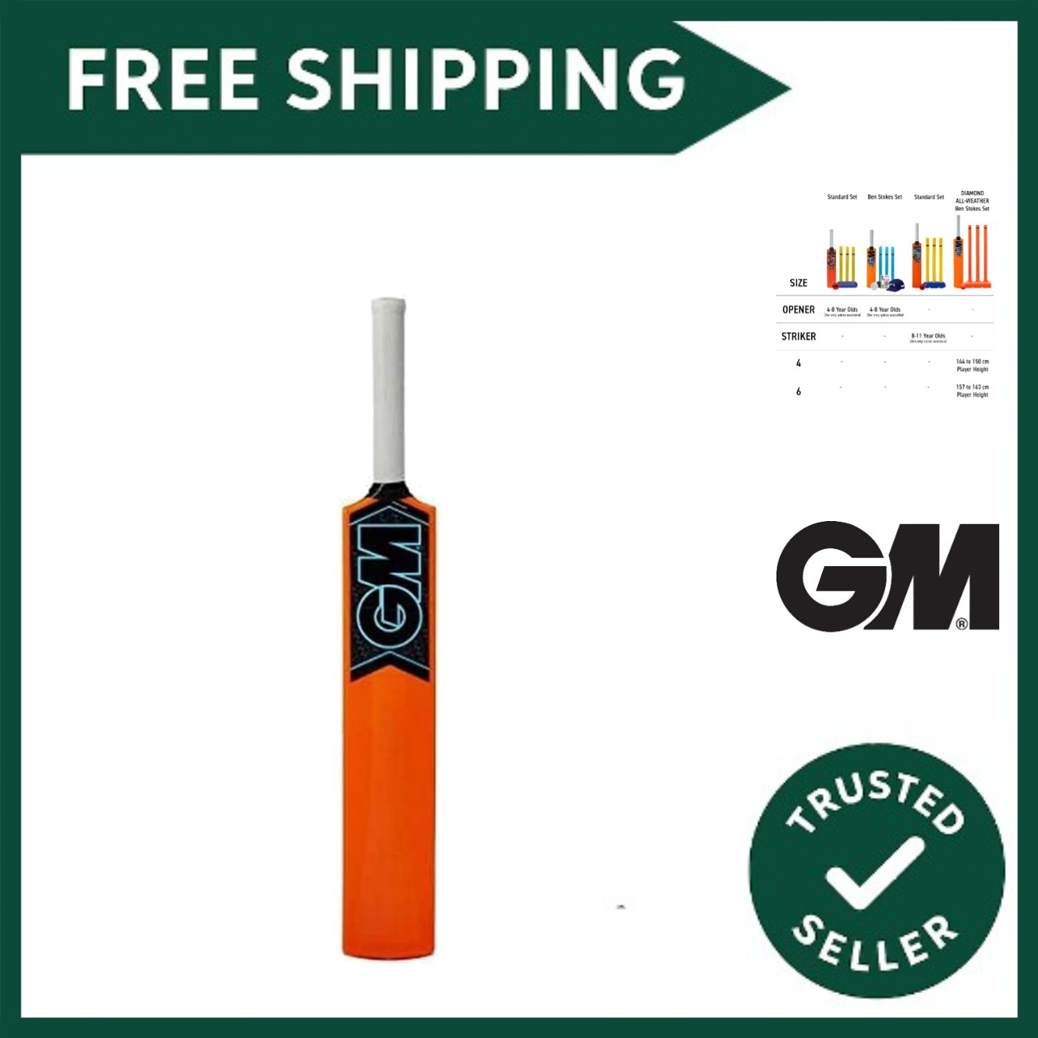 GM | Childrens Cricket Set or Bat Only | Moulded Plastic All-Weather | Sizes ...