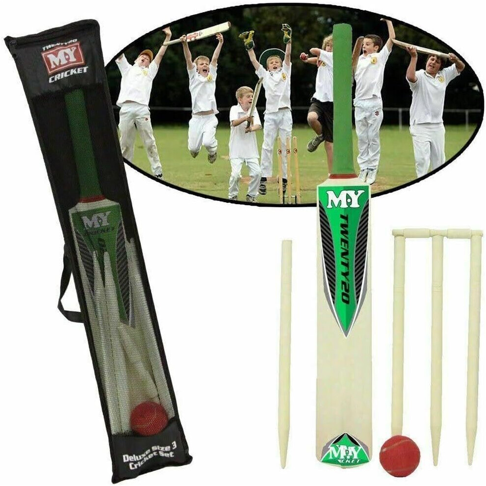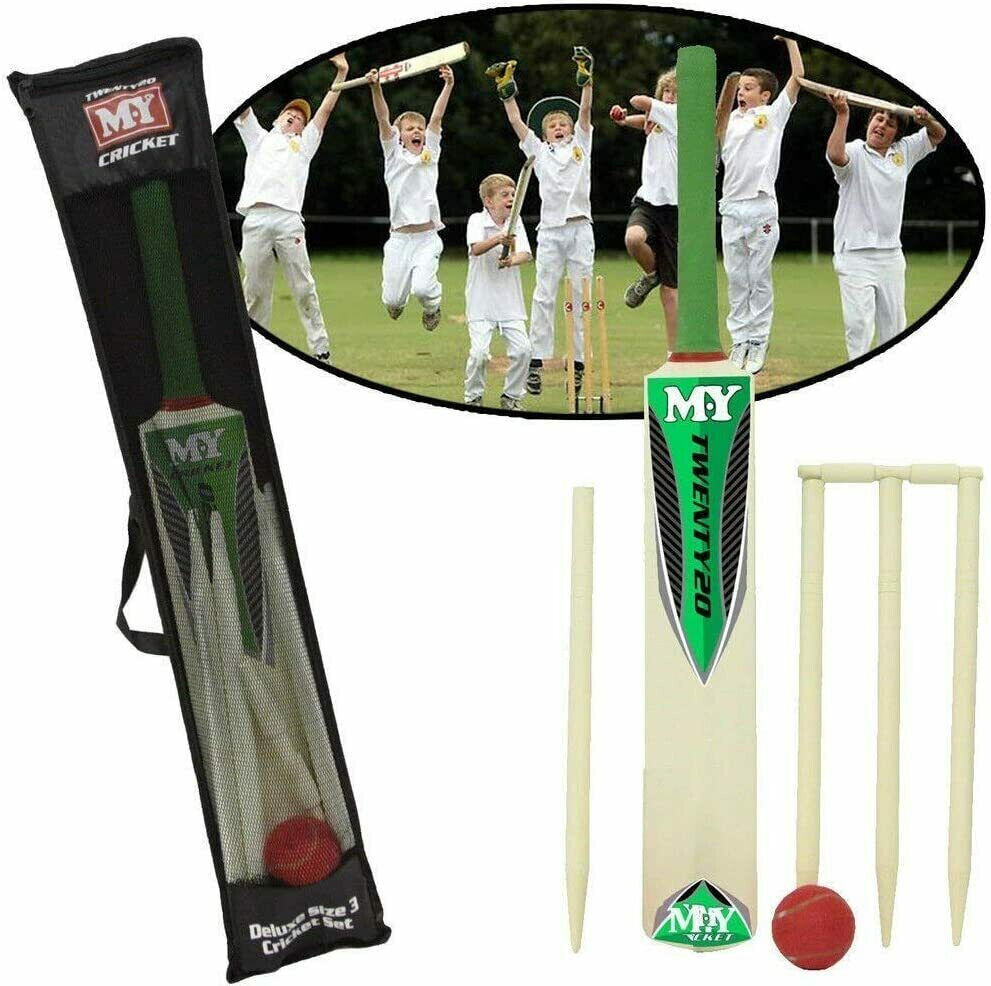 Kids Childrens Wooden Cricket Set Bat Size 5 Ball & Stumps sports ball