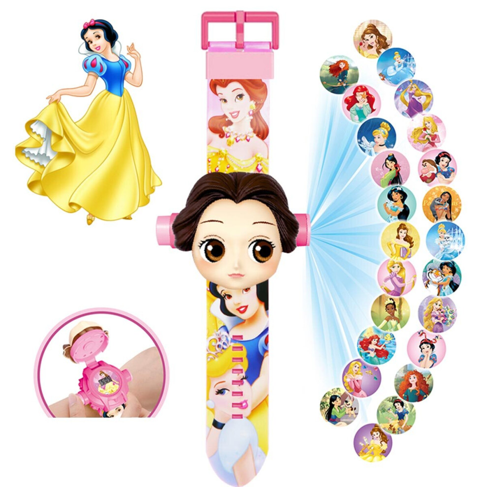 (Snow White) Kids Electronic Projection Watches Digital Childrens Watch 24 Projection 3D Cartoon Watches Spider Man