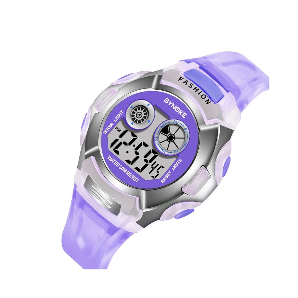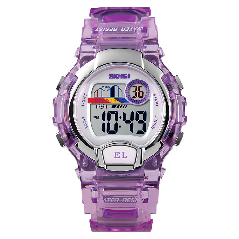 (Purple) SKMEI Boys Girls Childrens Purple Blue Digital Watch Transparent Strap Watch Stopwatch Ages 5-13