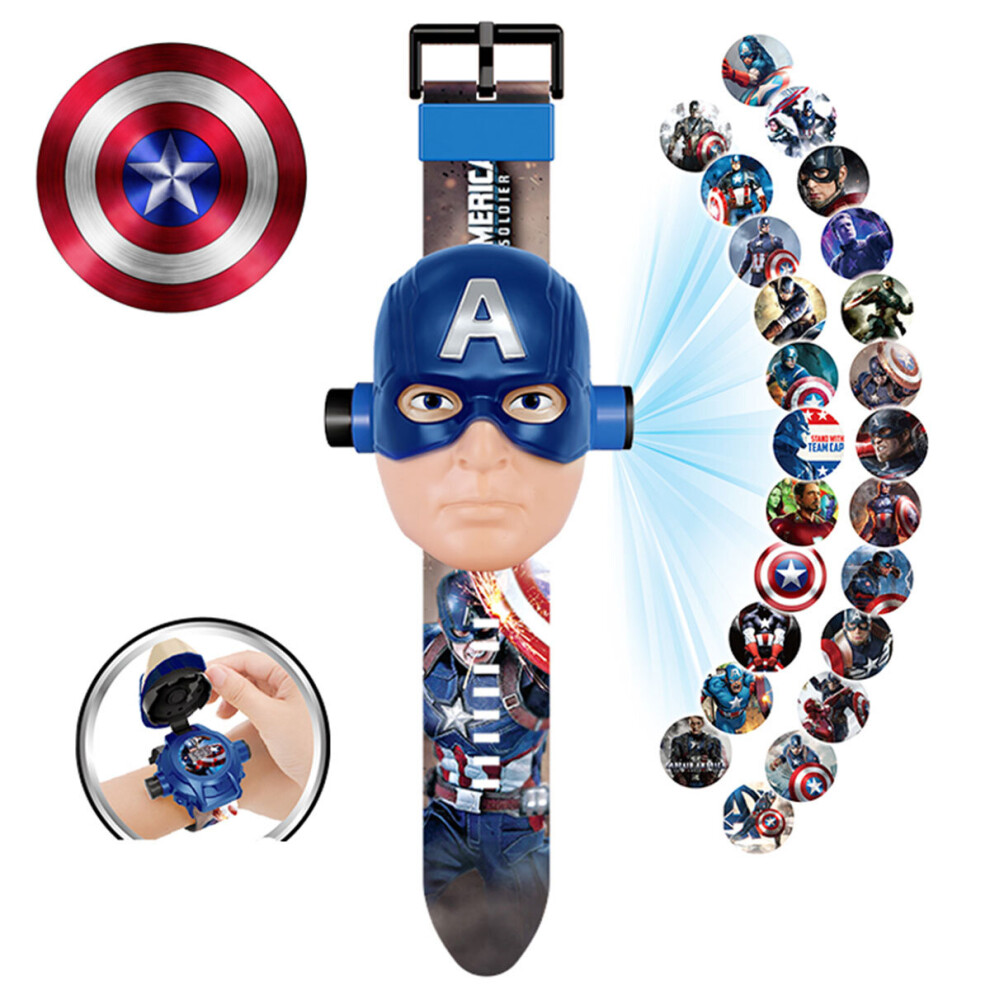 (Captain America) Kids Electronic Projection Watches Digital Childrens Watch 24 Projection 3D Cartoon Watches Spider Man