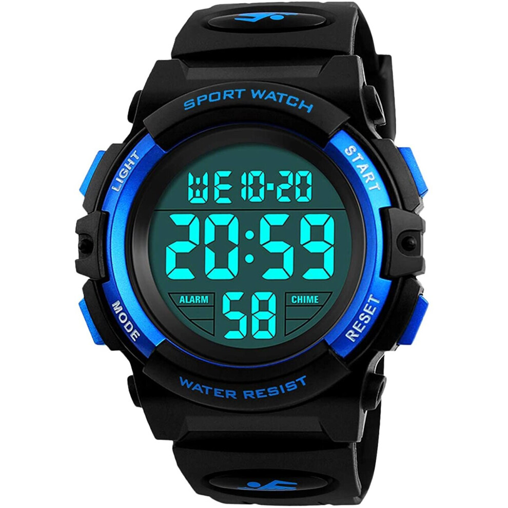 BHGWR Boys Digital Watches, Kids Sports 5ATM Waterproof Watch with Alarm/Timer/EL Light,Blue Childrens Outdoor Digital Watch for Teenagers Boys