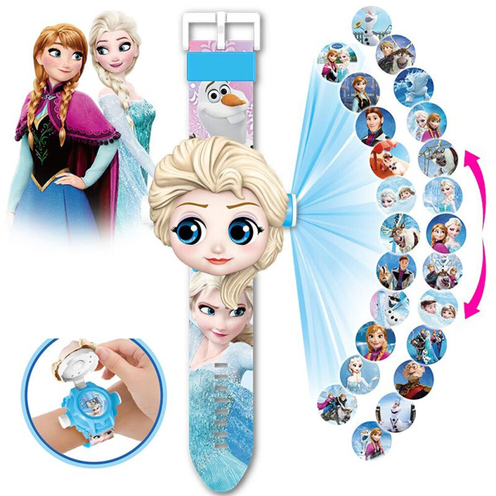 (Elsa) Kids Electronic Projection Watches Digital Childrens Watch 24 Projection 3D Cartoon Watches Spider Man