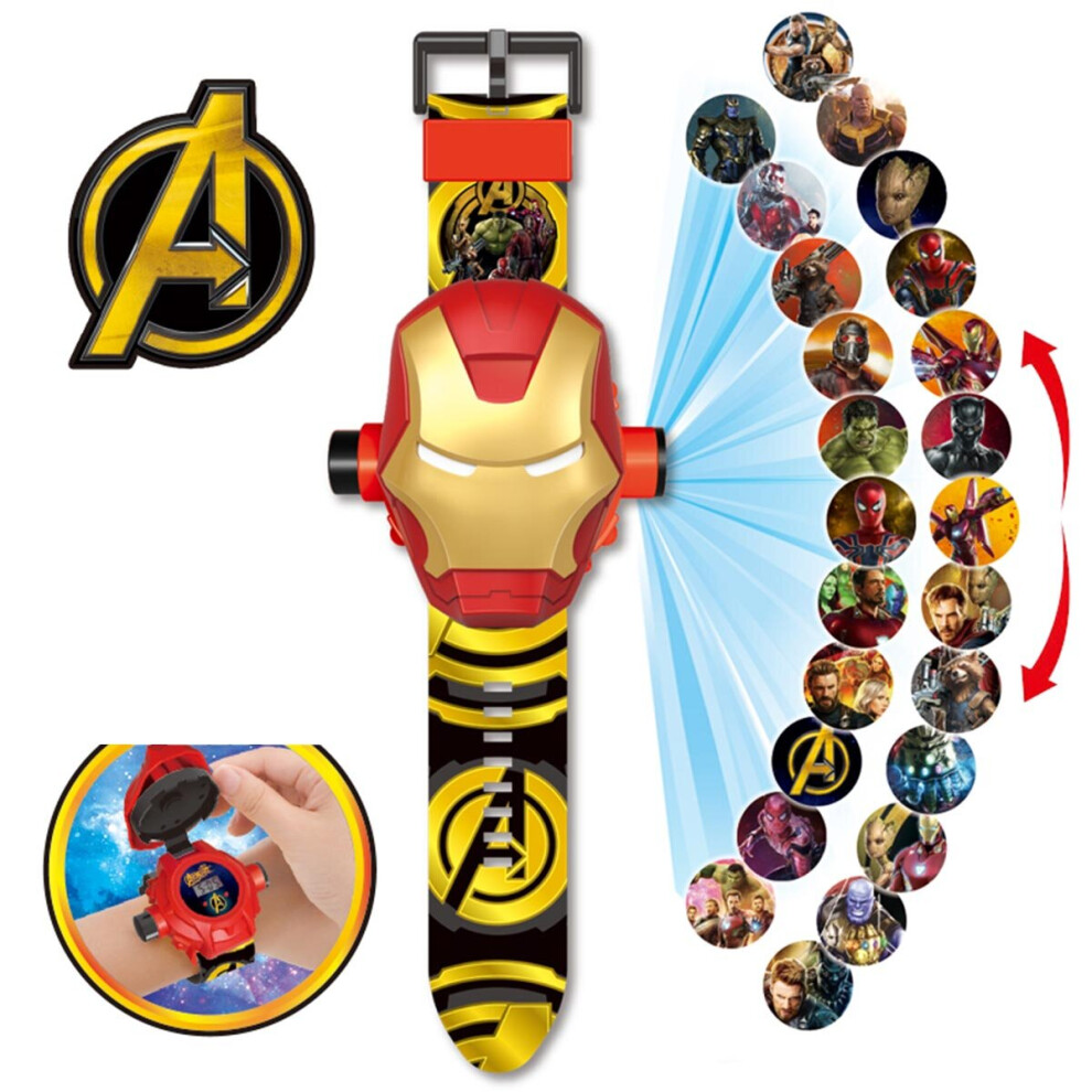 (Ironman) Kids Electronic Projection Watches Digital Childrens Watch 24 Projection 3D Cartoon Watches Spider Man