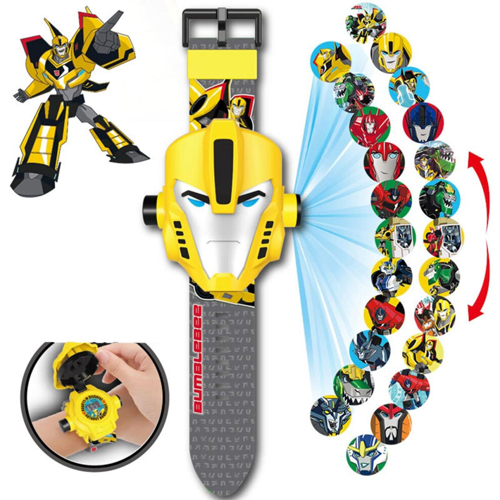(Bumblebee) Kids Electronic Projection Watches Digital Childrens Watch 24 Projection 3D Cartoon Watches Spider Man