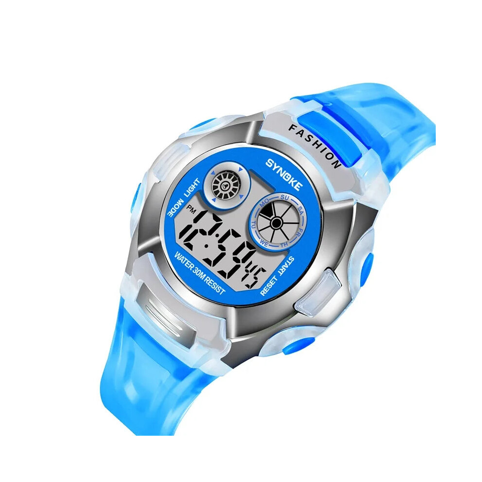 (Blue watch) Kids Childrens Digital Watch Boy Girl Waterproof Sports LED Wristwatch