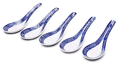 H3TF5J Dinner Spoons Set Soup Spoon Dishwasher Safe, 5 Chinese Ceramic Spoons Children's Rice Spoon Blue and White Porcelain Tableware Spoon Traditional Glaze