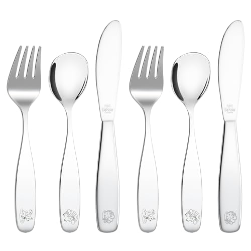 Lehoo Castle Toddler Kids Cutlery Set, 6 Pcs Stainless Steel Travel Camping Baby Cutlery Sets - 2 x Forks, 2 x Spoons, 2 x Knives, Children's Dinner Knife and Fork Sets (Ocean Park)