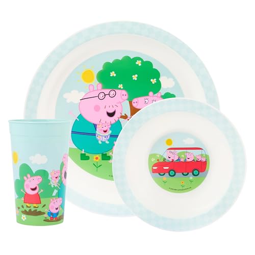 Peppa Pig 3 Piece Polypropylene Dinner Set, Tumbler Bowl and Plate, Children's Dinnerware Featuring Peppa, Mummy, Daddy, George and Evie Pig, Microwave and Dishwasher Safe, 36 Months Plus