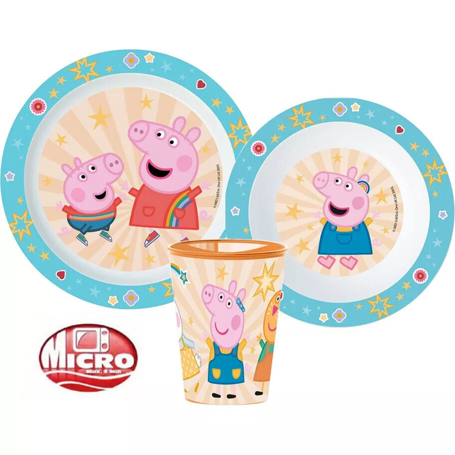 Peppa Pig Kids Childrens BPA Free 3pcs Breakfast Dinner Set Plate, Bowl & Cup