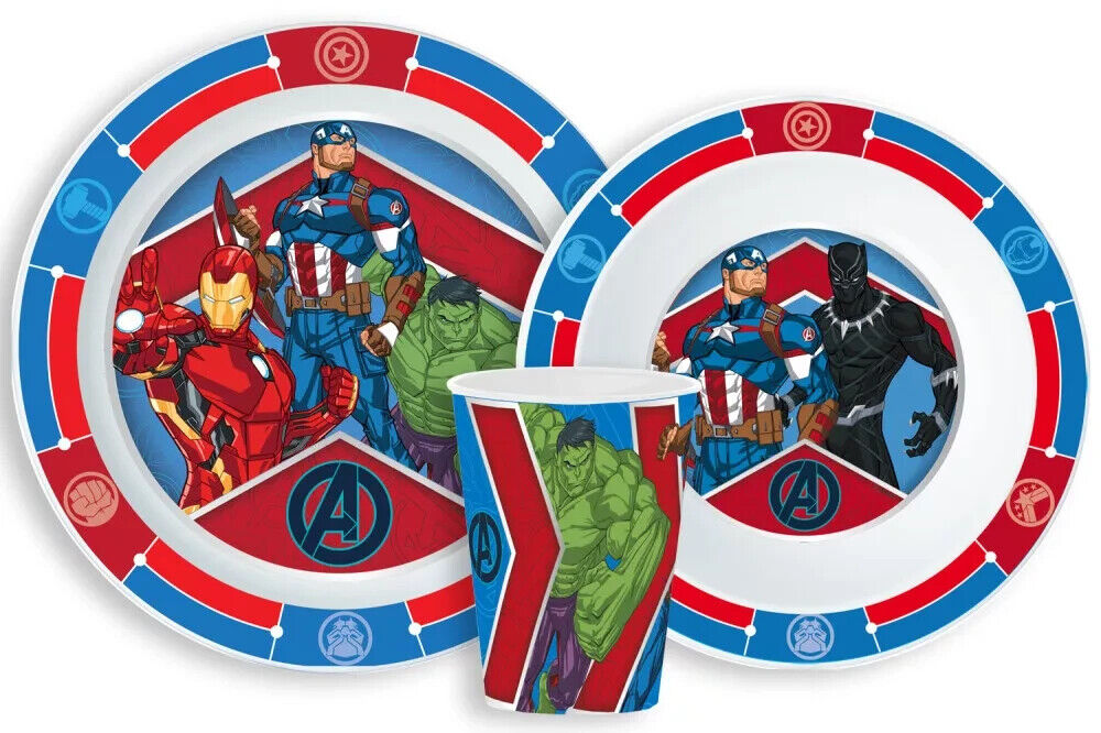 Marvel Avengers Childrens Kids Toddlers 3 Pc Plate Bowl Cup Dinner Breakfast Set