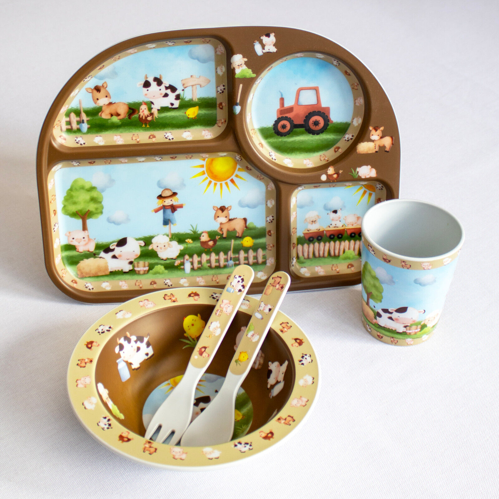 Farmyard Childrens Dinner Set 5 Piece Recycled Plastic Animals Food Dinnerware