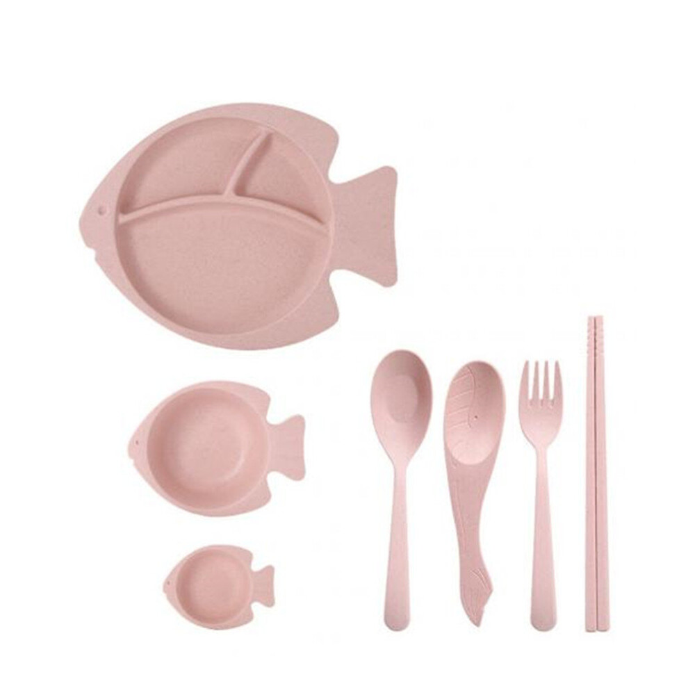 2Set Cartoon Children's Dinner Set Wheat Straw Creative Cartoon Tableware Baby Dish Tray Breakfast Tray Addition Fork and Spoon
