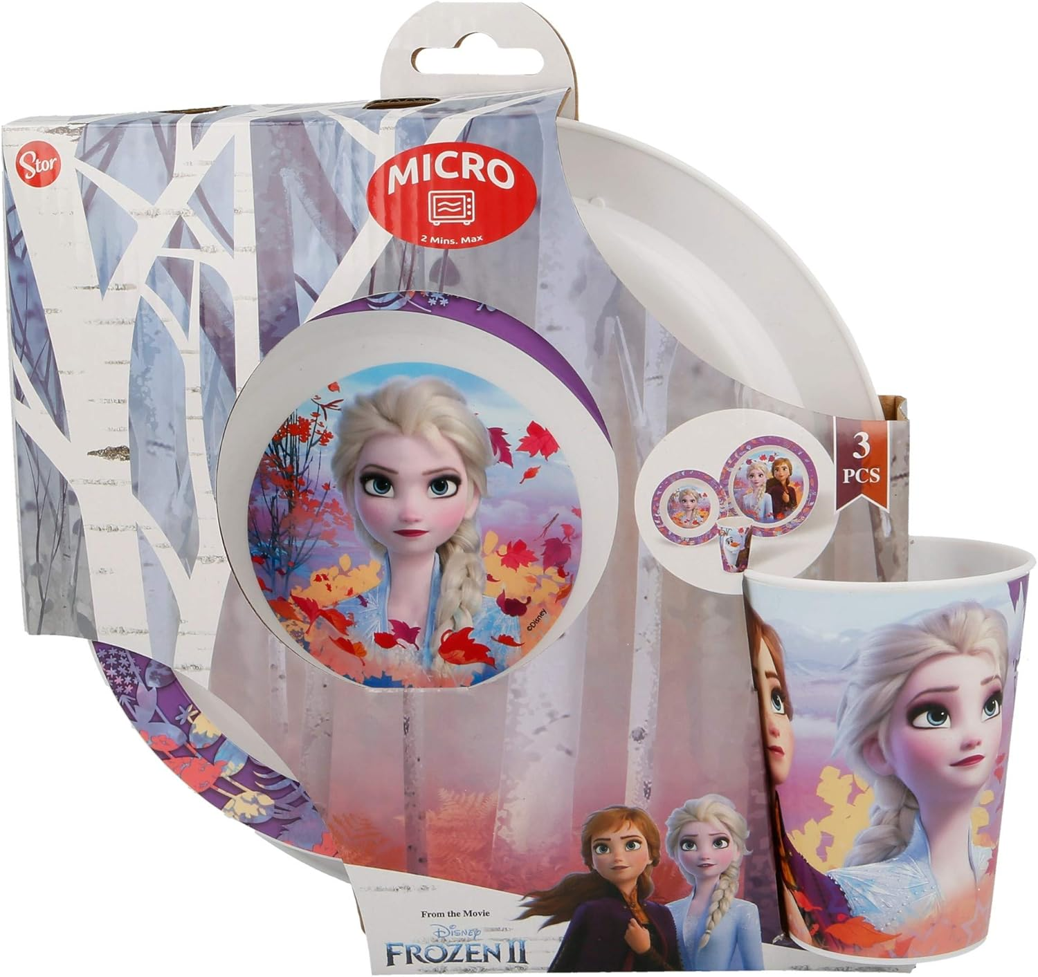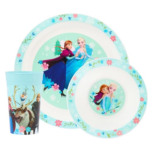 Disney Frozen 3-Piece Polypropylene Children's Dinner Set – Plate, Bowl, and Tumbler Featuring Anna, Elsa, Olaf, Kristoff, and Sven – Microwave and Dishwasher Safe – Suitable for Ages 36+ Months