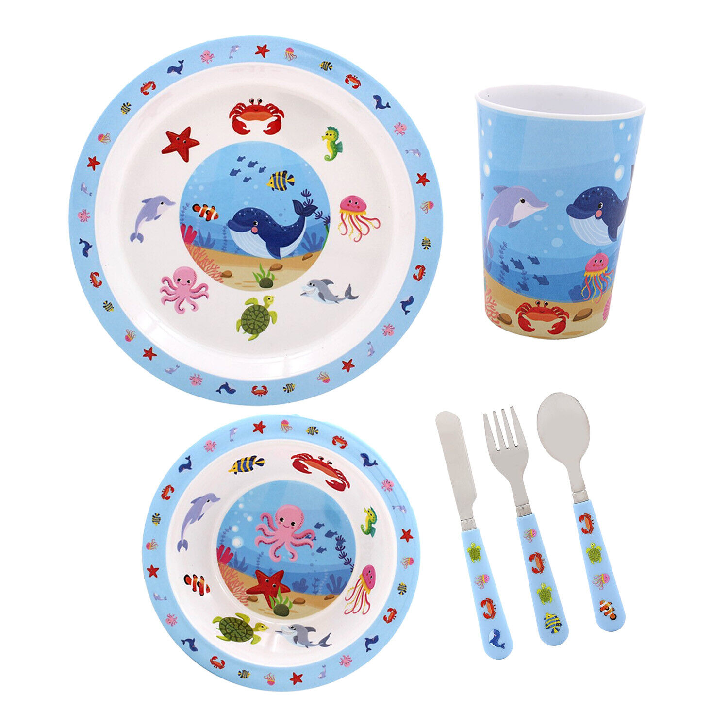 Kids Dinner Set 4pc Blue Sea Life Aqua Animals Childrens Bowl Meal Plate Spoon