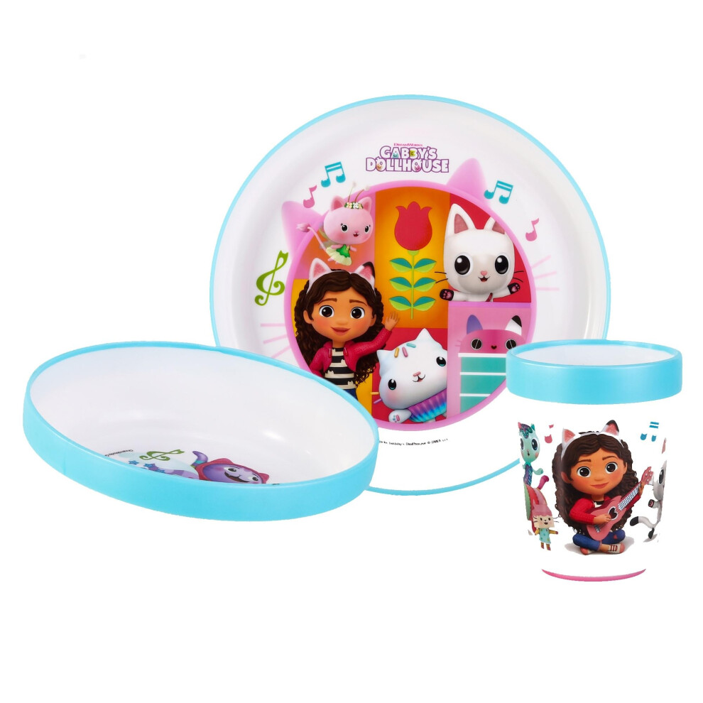 Gabby's Dollhouse 3pcs Bicolor Kids Childrens Dinner Set Plate, Bowl & Tumbler