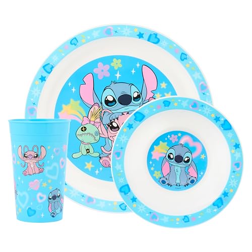 Stitch 3-Piece Polypropylene Children's Dinner Set – Plate, Bowl, and Tumbler Featuring Stitch, Lilo, and Scump – Microwave and Dishwasher Safe – Suitable for Ages 36+ Months