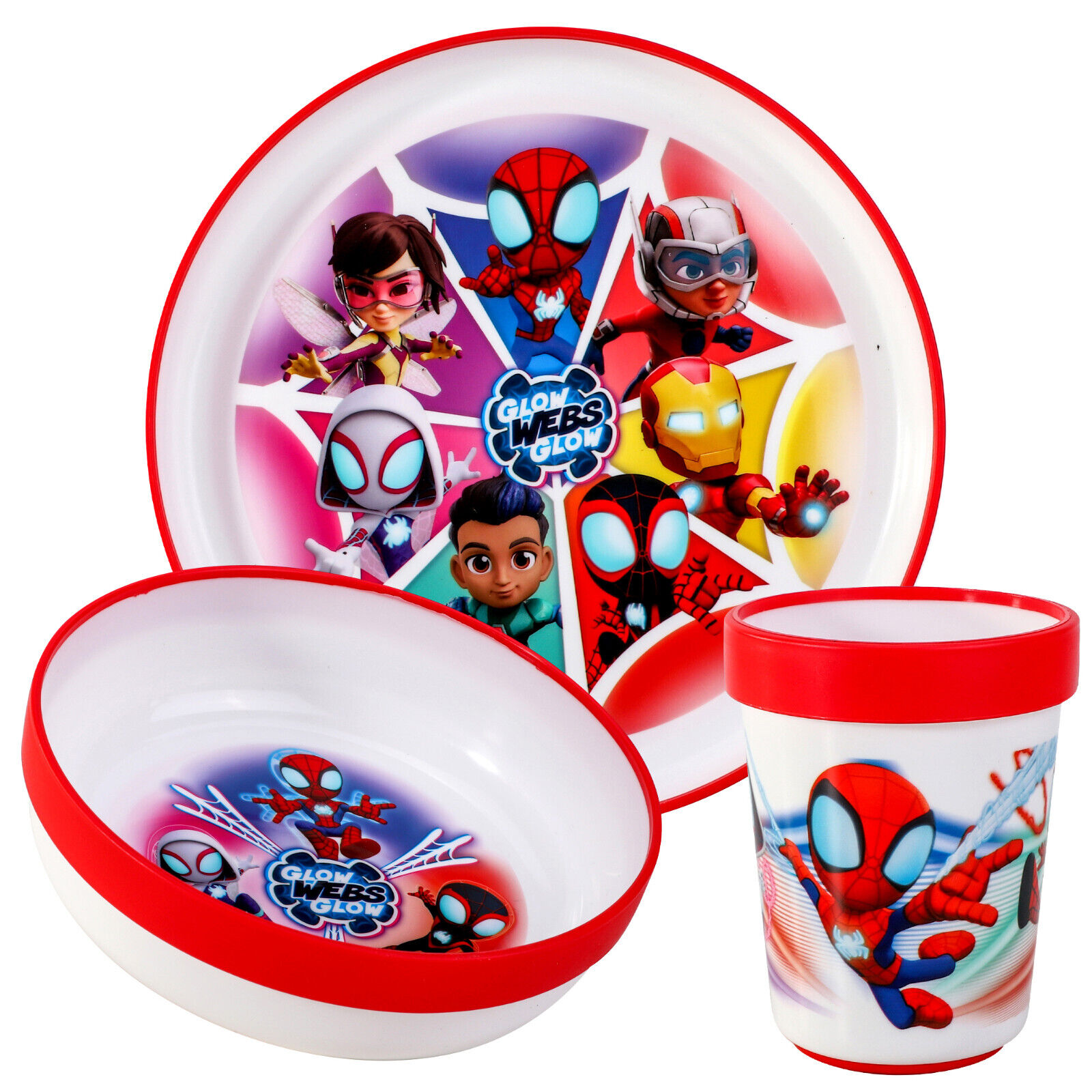 Spidey & Friends 3pcs Bicolor Kids Childrens Dinner Set Plate, Bowl & Tumbler