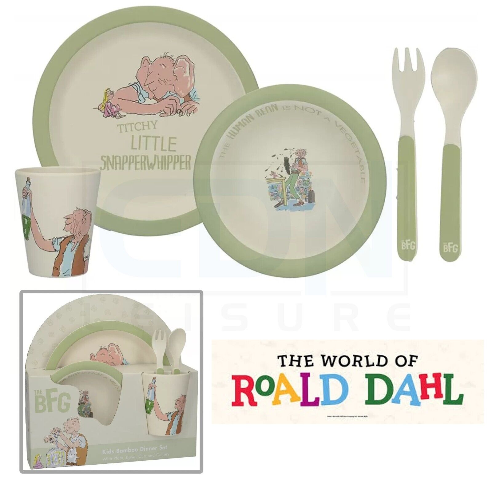 BFG Childrens Dinner Set Roald Dahl 4 Piece Plate Bowl Cup Cutlery Boy Girl Gift