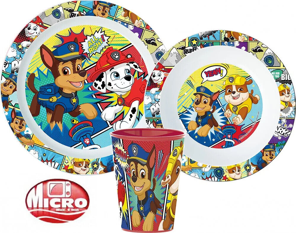 Paw Patrol Children's Kids Toddler 3 Pc Plate Bowl & Cup Dinner Breakfast Set