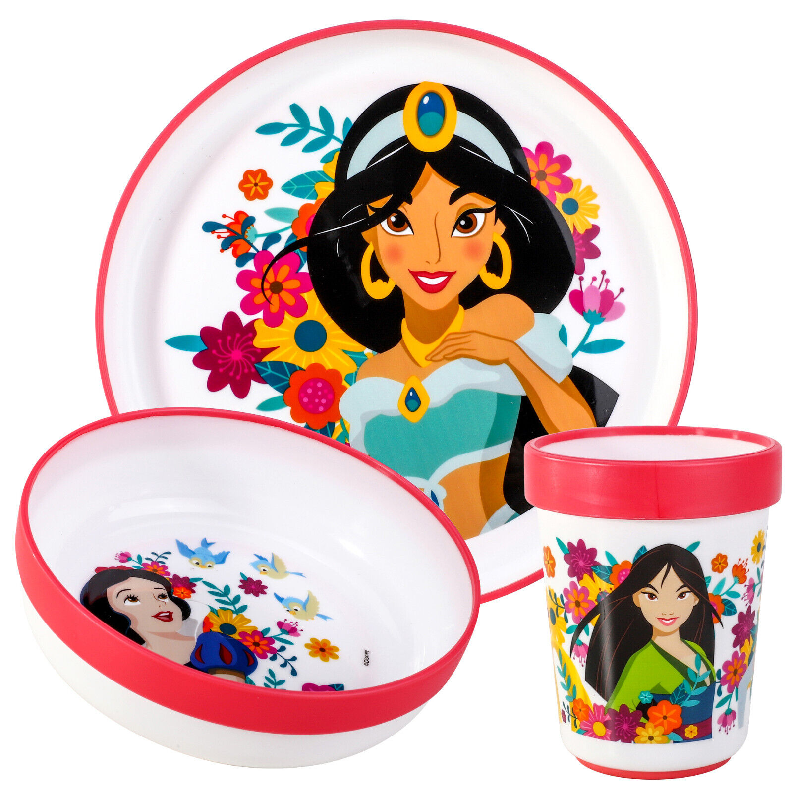 Disney Princess 3pcs Bicolor Kids Childrens Dinner Set Plate, Bowl & Tumbler