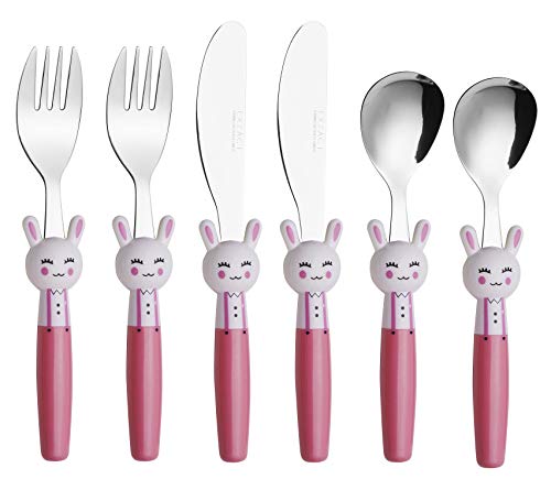 Exzact Children's Cutlery Stainless Steel 6pcs Set/Kids Cutlery/Toddler Utensils/Flatware - 2 x Forks, 2 x Safe Dinner Knives, 2 x Dinner Spoons (Rabbit x 6)