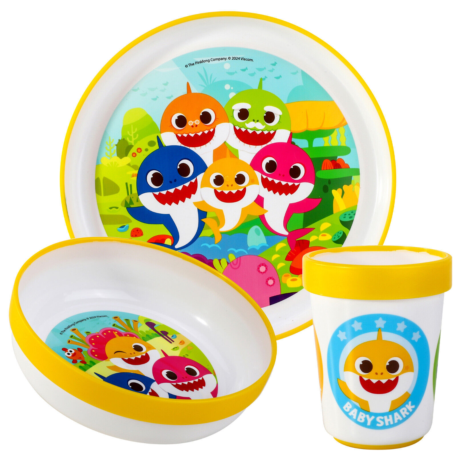 Baby Shark 3pcs Bicolor Kids Childrens Dinner Set Plate, Bowl & Tumbler