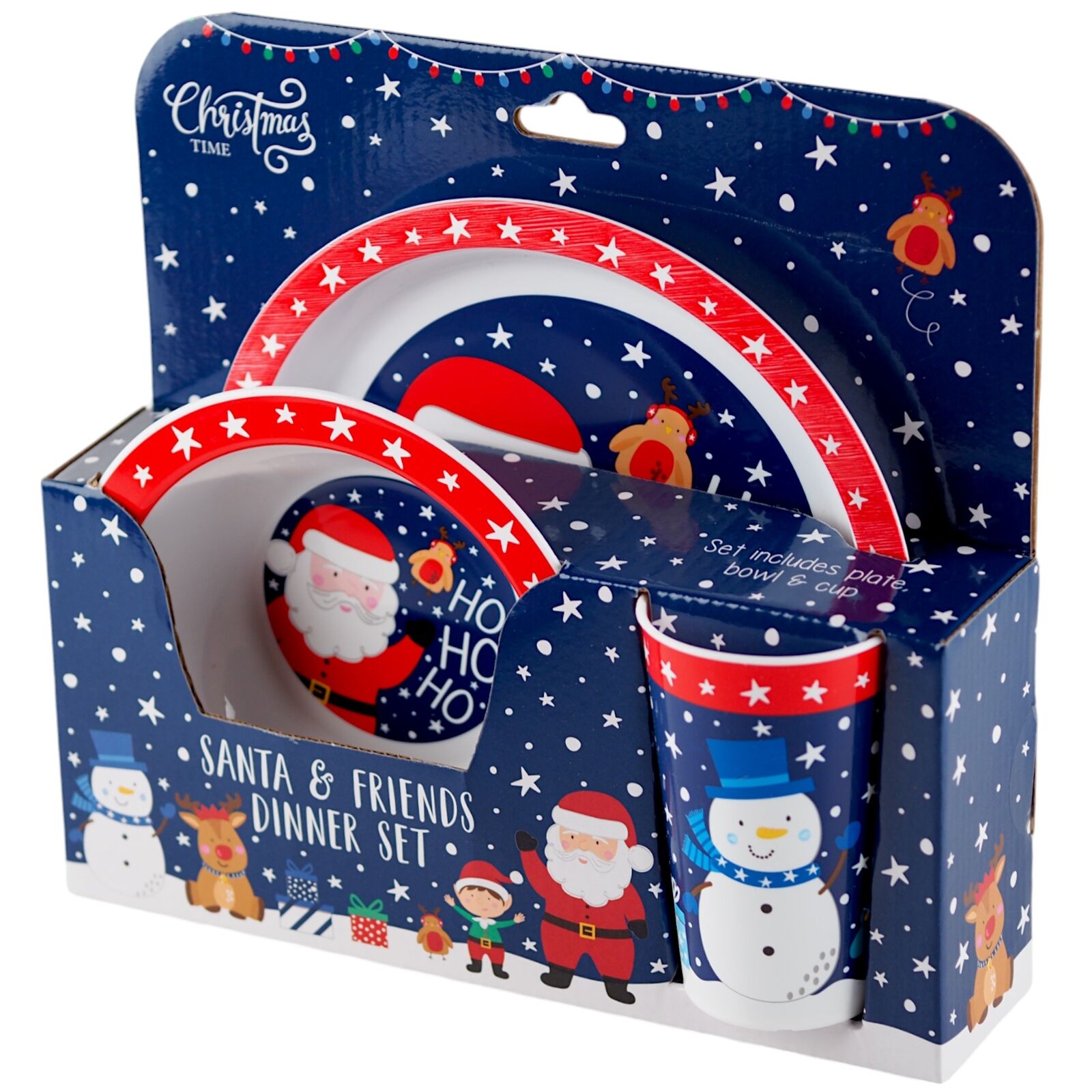 Santa & Friends Children's Christmas Dinner Set - 3-Piece Plate Bowl Cup